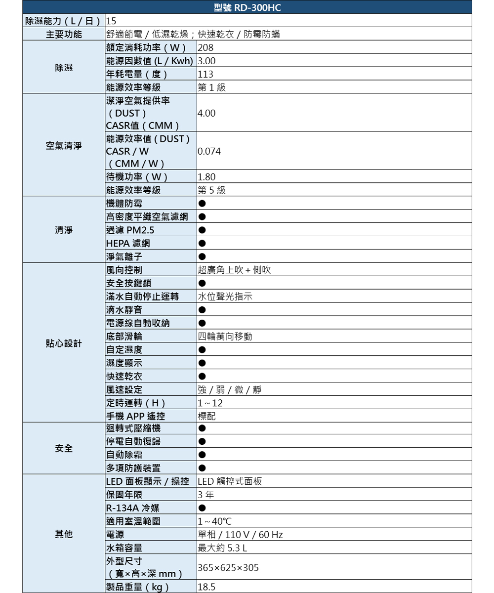 HITACHI 日立1級效能15公升清淨型除濕機 RD-300HC金韻綠