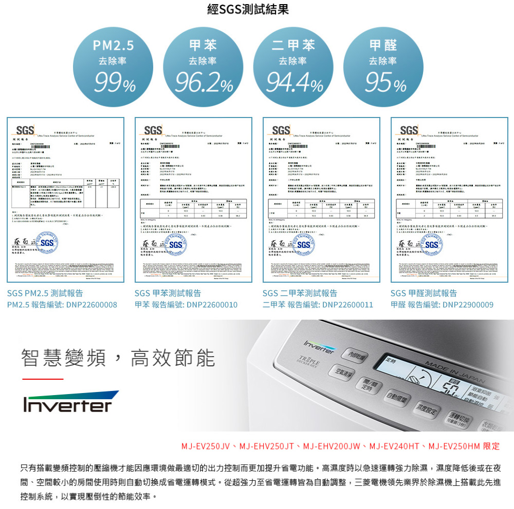Mitsubishi 三菱日製20公升除濕機 MJ-EHV200JW