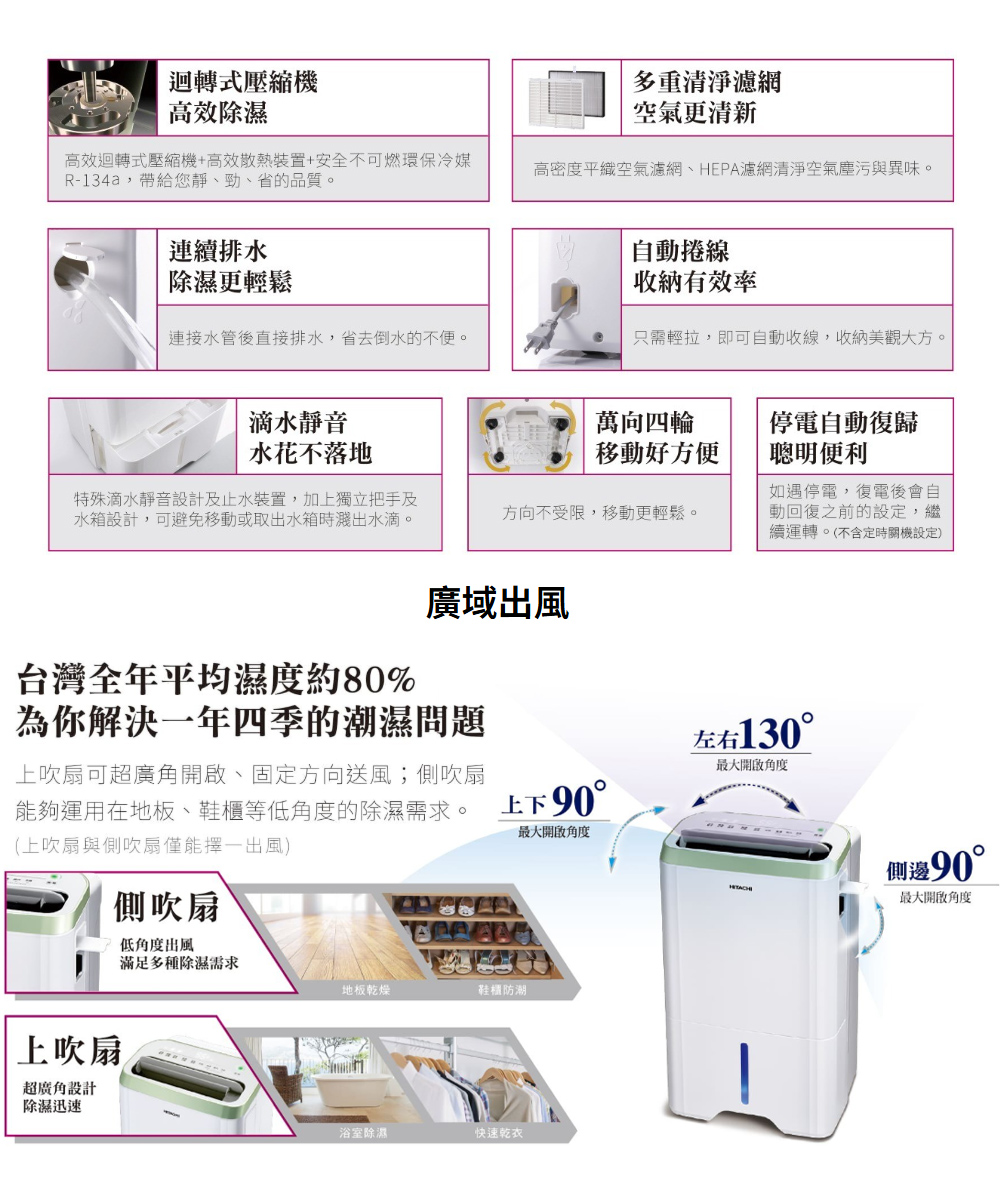 HITACHI 日立1級效能18公升清淨型除濕機 RD-360HC金韻綠